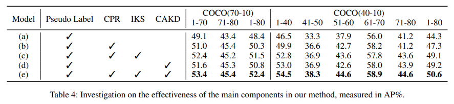 三大模块协同有效:CPR、IKS、CAKD 分别带来显著性能提升,组合后效果最优。