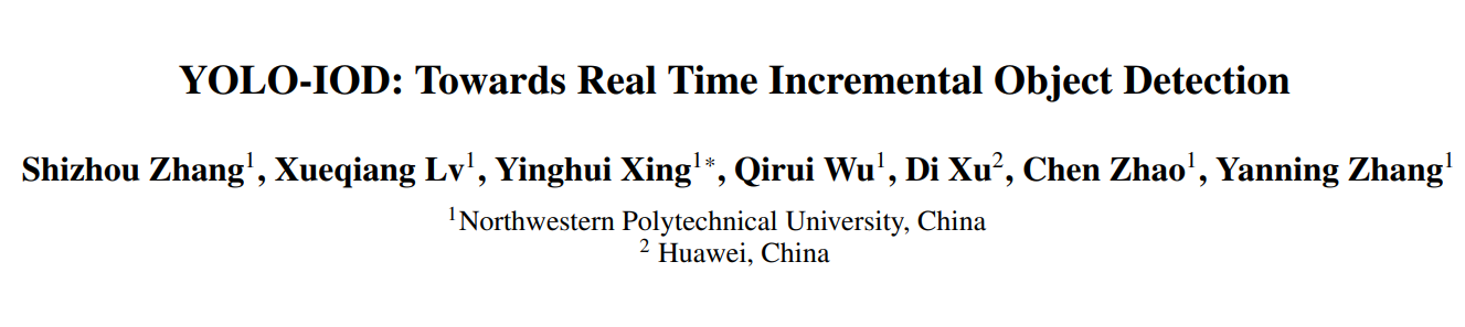 论文标题:YOLO-IOD: Towards Real Time Incremental Object Detection