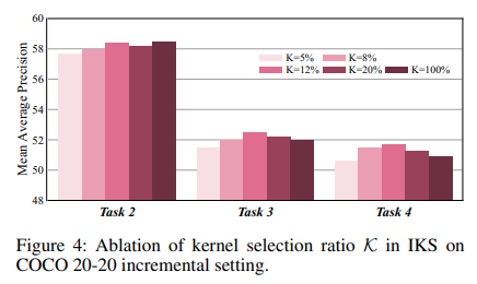 IKS 核选择比例:κ=12% 时实现稳定性与可塑性平衡,性能最优。