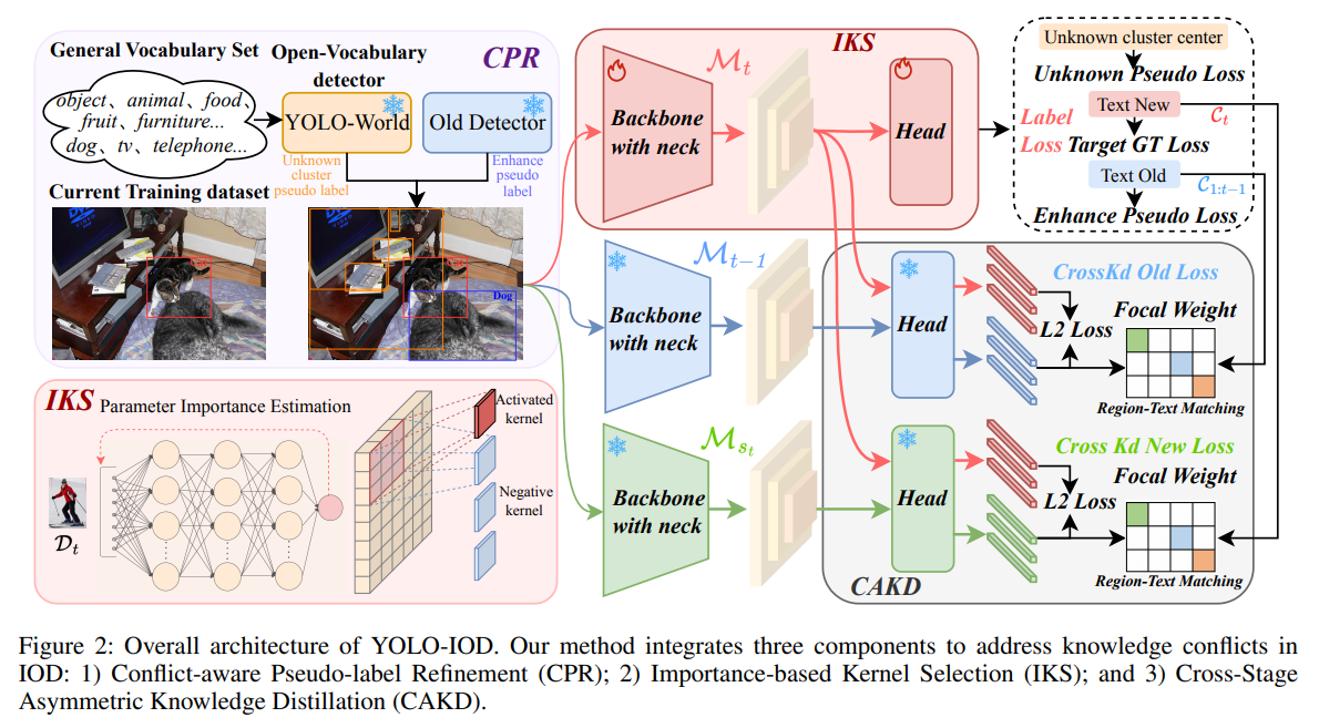 论文提出 YOLO-IOD 框架:基于现成的 YOLO-World 模型,通过三招解决上述问题。