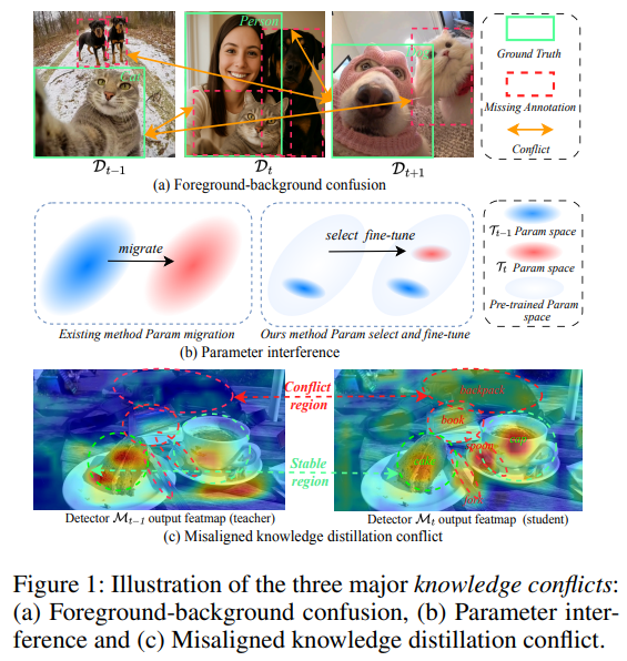 - 前景-背景混淆:训练新类别时,图中未标注的旧类别物体会被误判为"背景",导致模型逐渐遗忘它们。