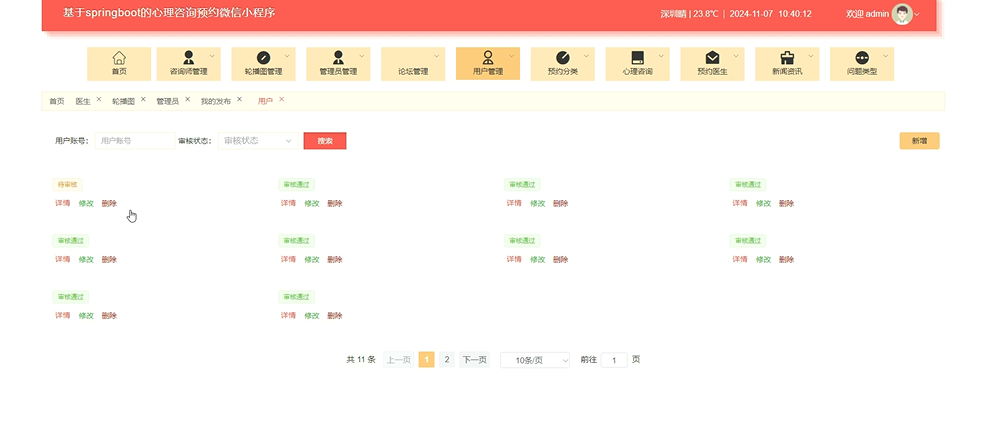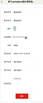 多角色协同服务体系:构建用户、医生、管理员三方联动模式,既满足用户便捷预约、互动需求,又通过管理员对咨询师资质审核、服务监管,保障服务专业性与规范性,形成闭环服务生态。