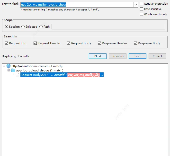 Find功能,支持按 URL、请求头、响应体等进行搜索 -