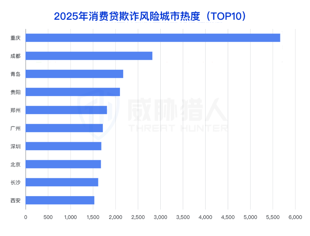4.4.3 2025年消费贷欺诈风险城市热度TOP5城市:重庆、成都、青岛、贵阳、郑州