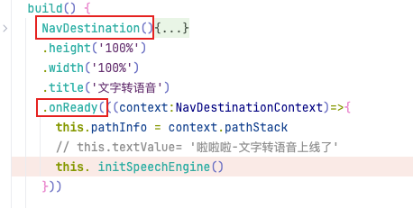 **增加一个知识点,**页面的生命周期,aboutToAppear常用在普通Router路由模式下给带有@Entry装饰器的页面使用的,但是我们使用NavDestination作为子页面,不带@Entry装饰器也用不到这个,在navigation路由框架下我们使用这个组件自带的一套生命周期,onReada是这个页面初始化时触发,最适合做一些实例的初始化和页面数据的整备,其他我们在工作中常用的还有onShow就是这个页面每次出现的时候触发,根据具体的场景使用这些生命周期函数,避免重复调用减少内存消耗提升性能。