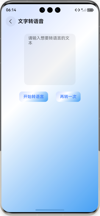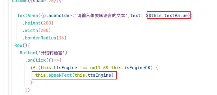 将封装好的speak方法绑定在播放键的点击事件下,即可播放,文本内容我们已经通过TextArea组件的双向绑定机制实时传给了speak方法。