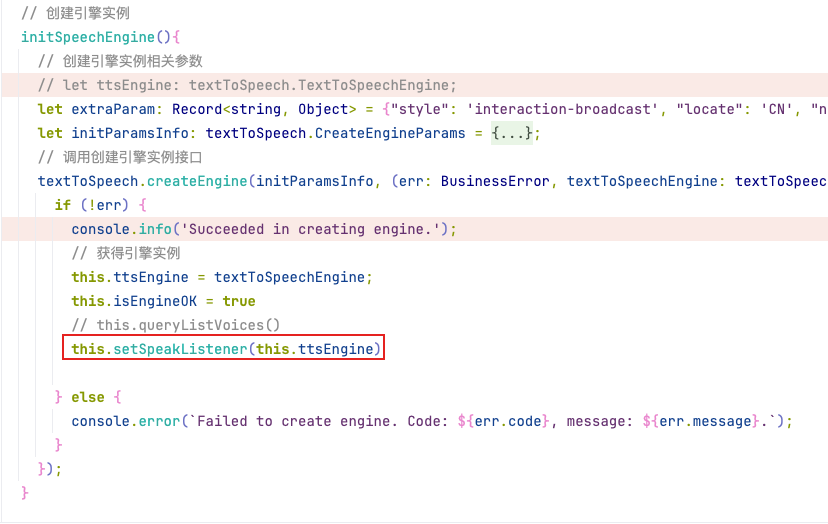 大家需要注意,监听和speak都是基于引擎实例来配置,所以我们在封装自定义方法时在外部都要留一个参数让我们初始化的引擎传进来