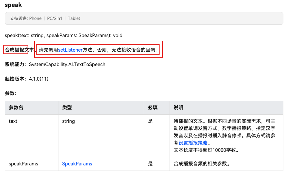 总结:初始化引擎,设置监听,开始播放。三步走,再加一些细节的考量,比如提前对于大步骤封装在一个函数内,方便顺序化调用和维护。每一步方法中耐心读文档看下调用限制和参数配置,看参数时要注意可选参数和必选参数。还有一点是API版本的问题,比如监听里的音频流回调,需要API19及以上才可以,那我手里的真机是鸿蒙5,还不支持拿到音频流,所以这期这个功能没能闭环,这时候如果工作中有这个需求,就要及时跟领导反应再买个真机或者选一个鸿蒙5测试机升级为6.切不可擅自升级哈,变砖了就砸手里了。