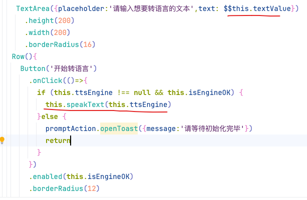 在触发播放前要确保有文字内容外(这里省略了,这是前端的一个常见的非空判断习惯),还要确保引擎已经成功启动且监听已设置,我们就做一个变量初始值为false,等引擎初始化完成后就为true作为控制能佛正常播放的安全把手。