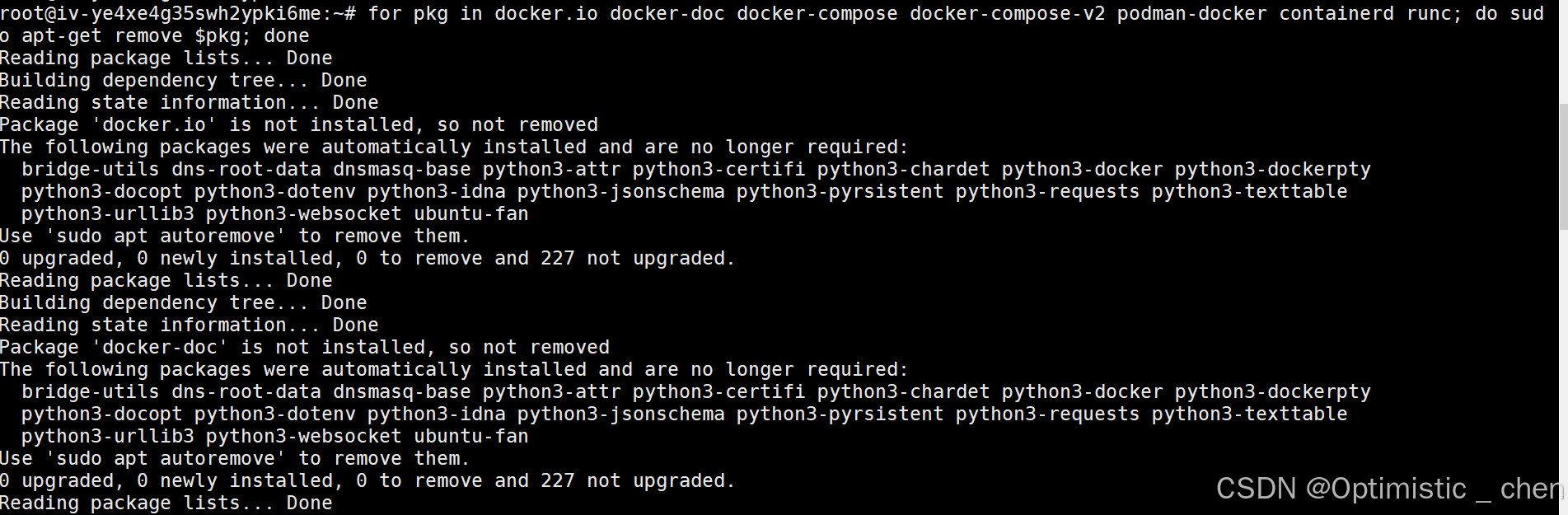 # 对每个软件包执行 apt-get remove 命令(卸载但保留配置文件)