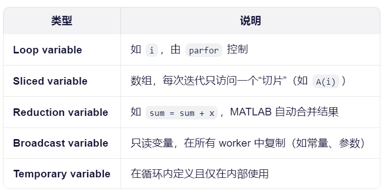 parfor 要求所有变量属于以下五类之一: