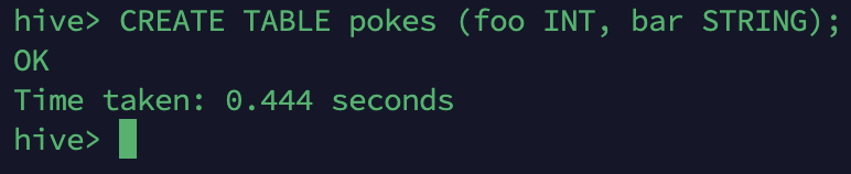 CREATE TABLE pokes (foo INT, bar STRING);
