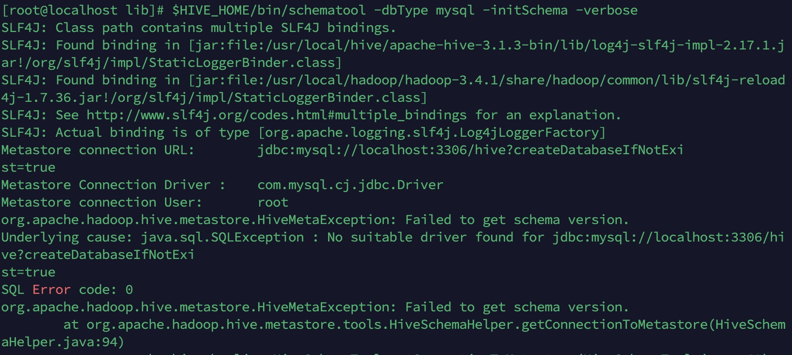 $HIVE_HOME/bin/schematool -dbType mysql -initSchema -verbose