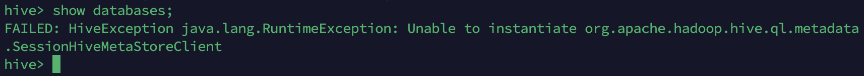 安装hive后启动没有问题,但是查看数据库时出现问题