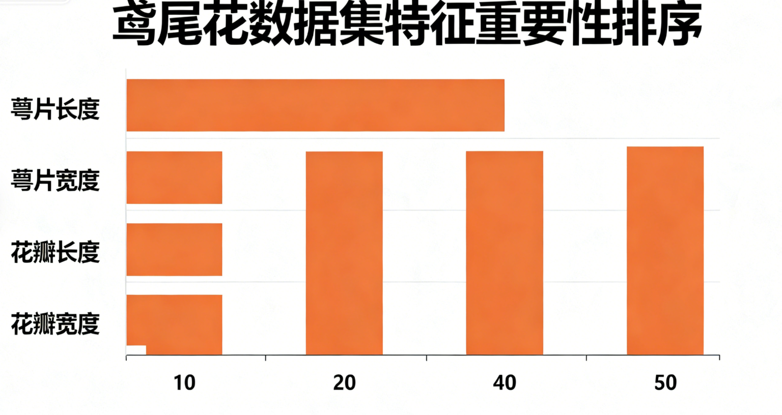 结果分析:鸢尾花数据集中,花瓣长度和花瓣宽度的重要性通常远高于花萼特征,与业务逻辑一致(花瓣特征更能区分鸢尾花品种)。