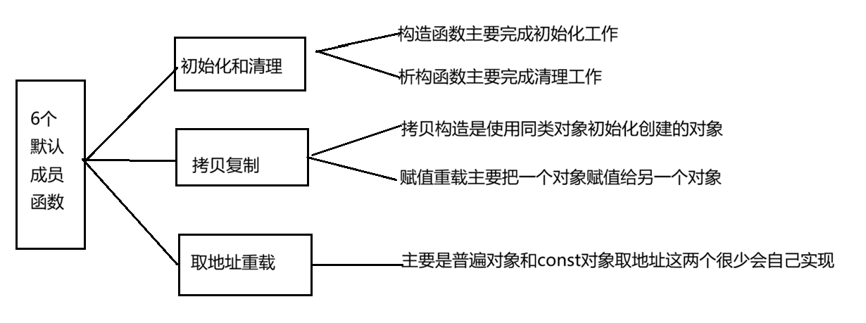 类的默认成员函数(我们不写,编译器默认生成的函数,如果不满足需求需要自己写)