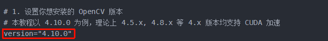 支持说明:本脚本已在 4.10.0 上验证通过。理论上 OpenCV 4.x 系列(如 4.5.5, 4.8.0 等)均包含 CUDA 模块,修改版本号即可支持。