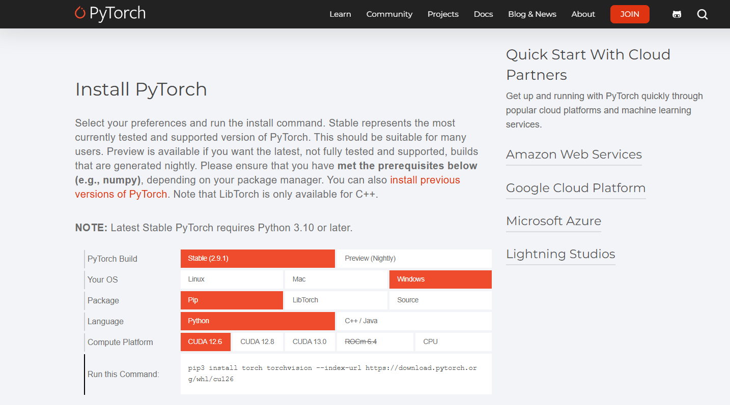 bashpip install torch torchvision torchaudio --index-url https://download.pytorch.org/whl/cu129