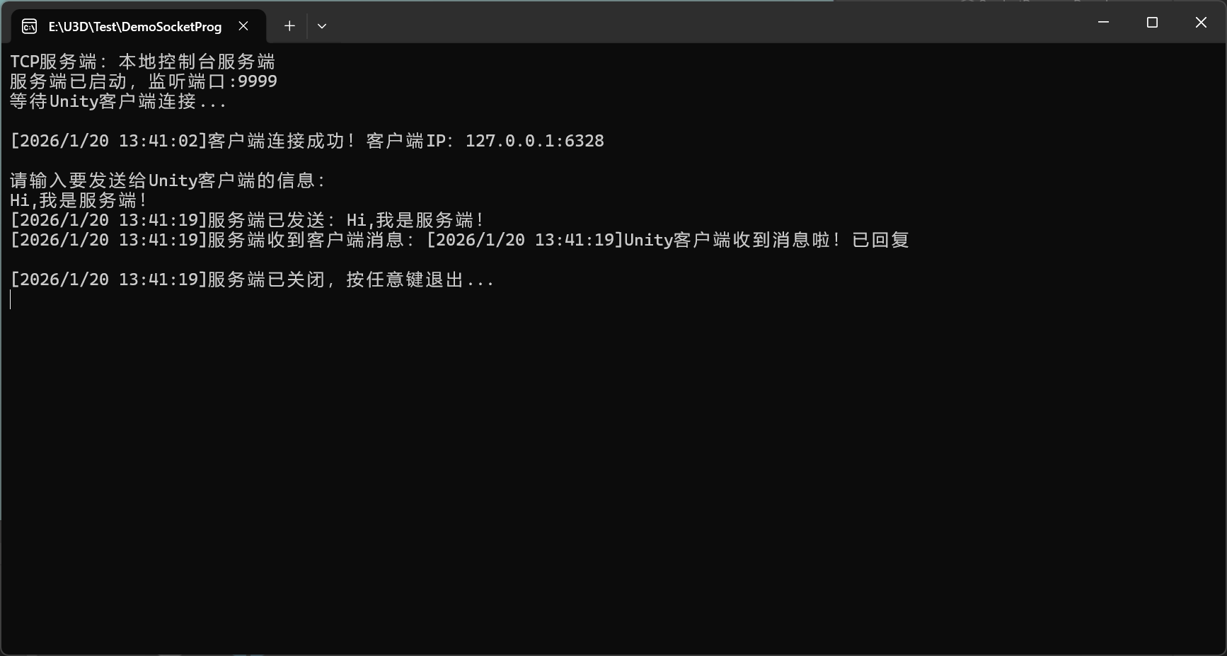 使用本地测试,服务端是控制台程序,本地启动后,Unity客户端连127.0.0.1即可通信,完全免费、无网络限制、稳定。