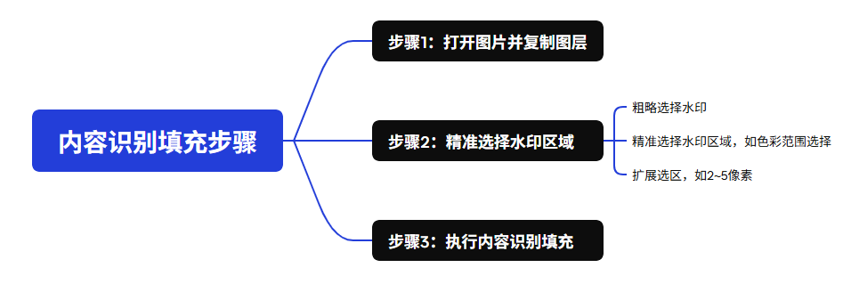 - 复杂背景处理:若水印位于人物、复杂风景等纹理杂乱的背景,单纯内容识别填充效果较差,可先填充再用「仿制图章工具」(快捷键S)手动校准纹理。