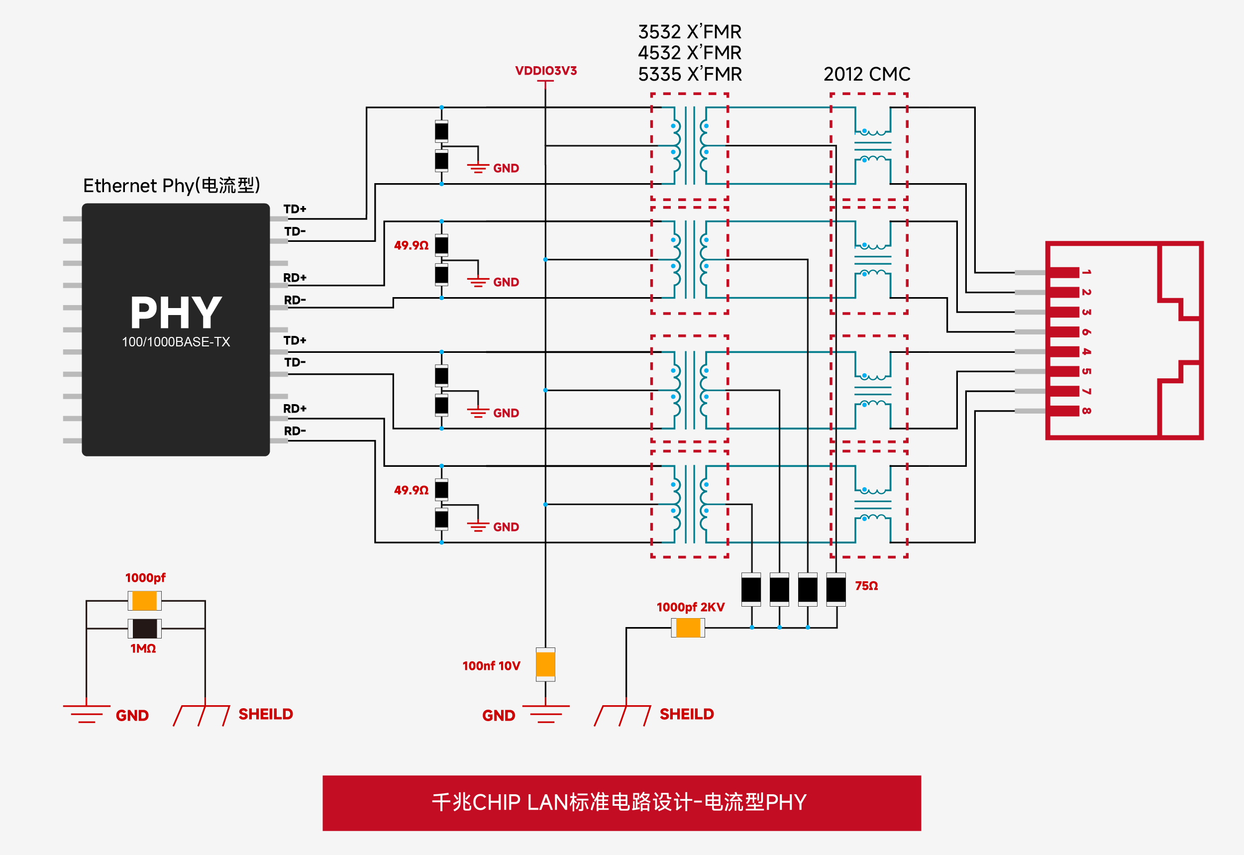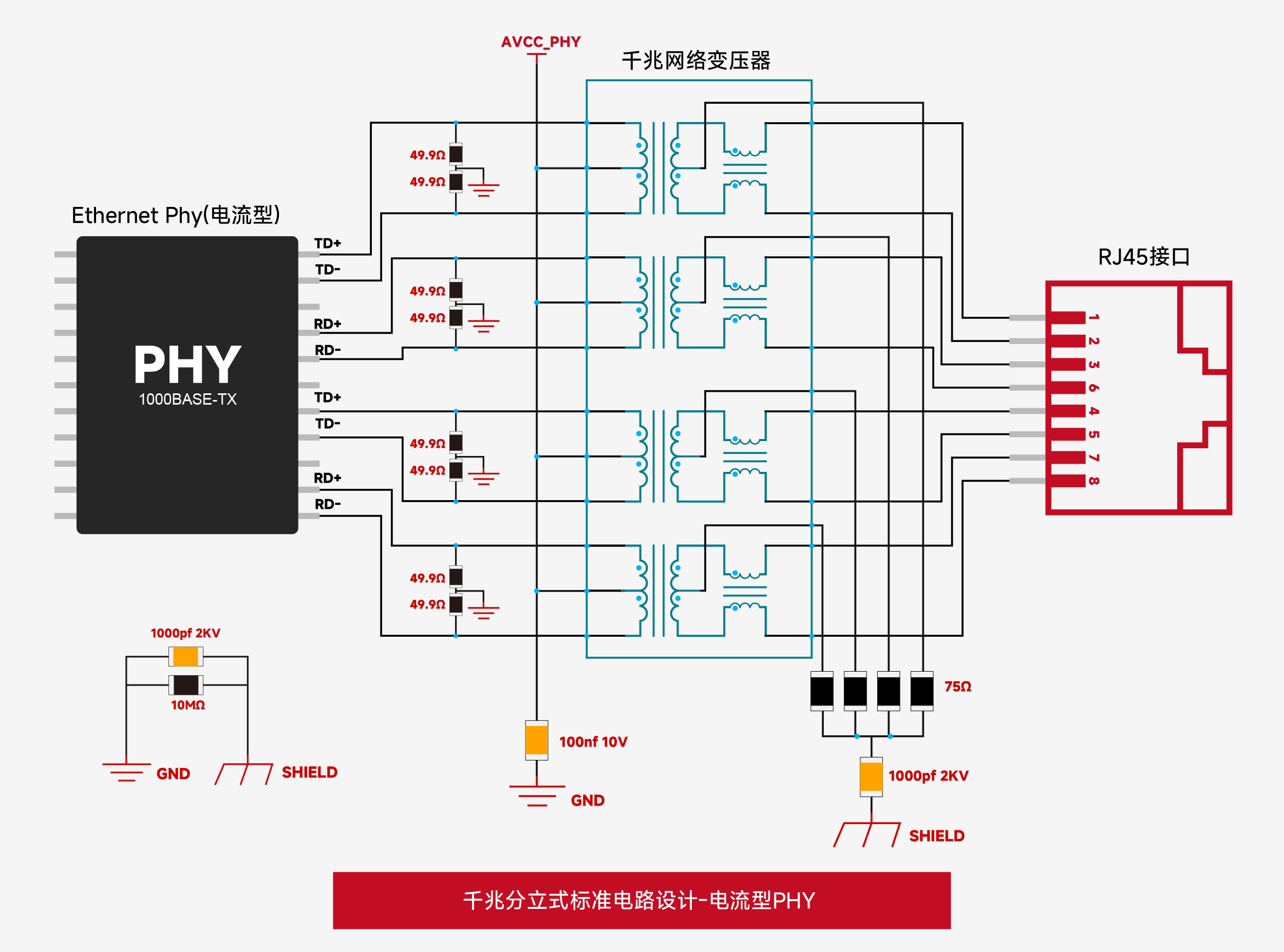 - 电流驱动型PHY :中心抽头接PHY供电电压(VCC)。