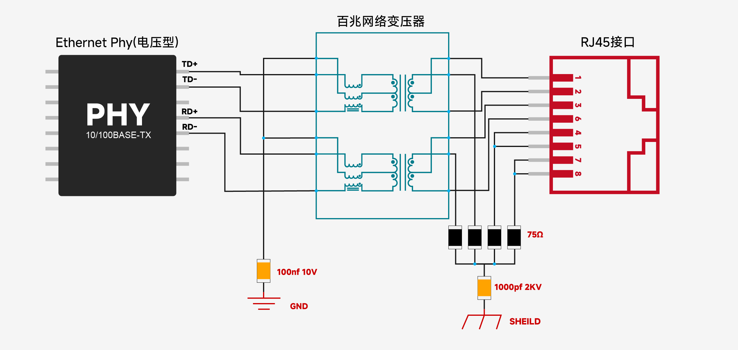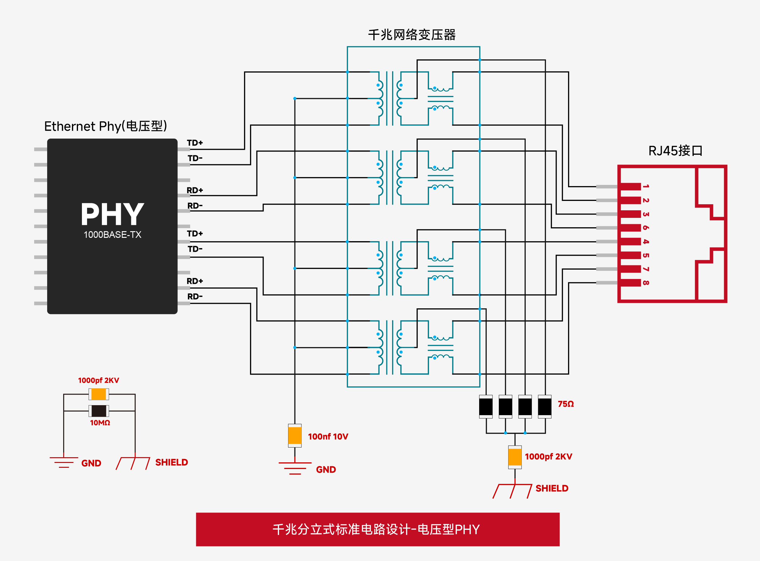 - 电压驱动型PHY:输出为电压信号,目前千兆及以上以太网中广泛应用。