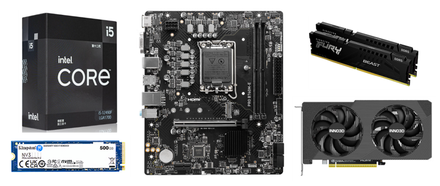 当前千元内高性价比处理器非英特尔酷睿 i5-12490F莫属,虽然是12代处理器,但是其性能在当前依然不俗,拥有6核12线程,基本频率3.0GHz,至高睿频可达4.6GHz,三级缓存20MB。主板选择了微星PRO B760M-E D5,这是一款DDR5版本的B760芯片组主板,这款主板拥有2条DDR5内存插槽,最高可支持DDR5-5600+,一组M.2 PCIe 4.0接口,4组SATA接口。