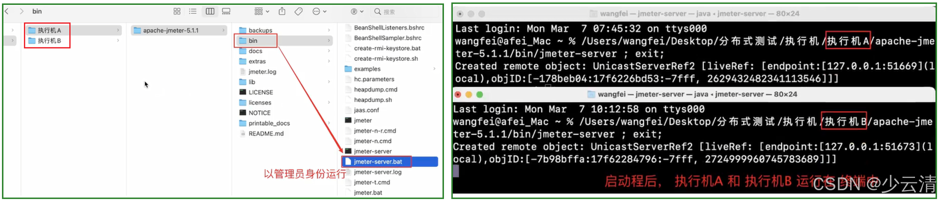 1、代理机:进入bin目录下,执行jmeter_server.bat。(启动执行机A和执行机B)