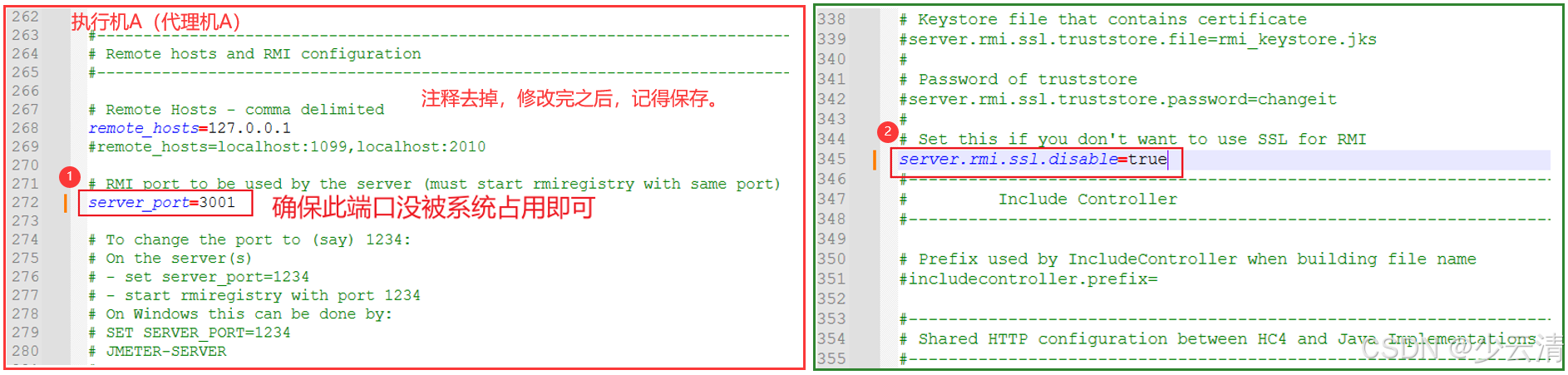 - 打开bin/jmeter.properties文件,修改`server_port`,比如:`server_port=2001`