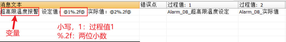 利用过程值,来显示报警时的实际值和设定值