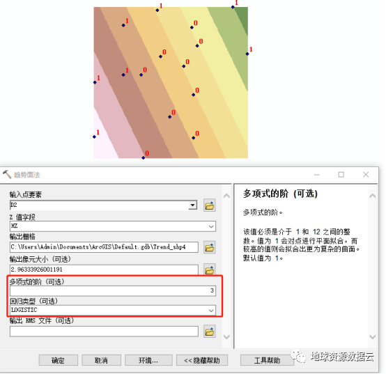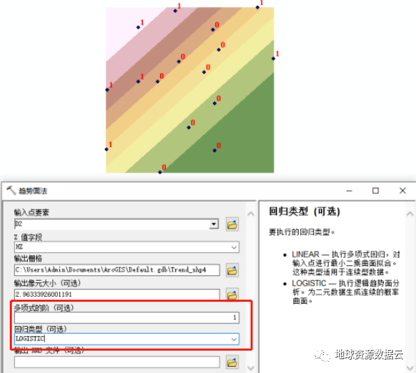3.对于回归类型中的 LOGISTIC 选项,输入点要素的 z 值字段应具有编码零 (0) 和一 (1)。