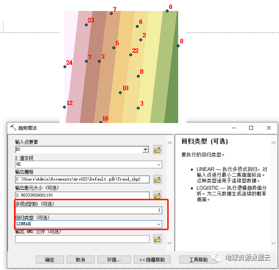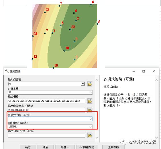 使用趋势面法将点插值成栅格曲面。