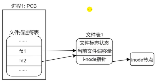 当同一个文件被多次打开时,在PCB中的文件描述符表中就会有多个文件描述符来指向同一个文件 ,文件描述符的分配规则是从未被使用的最小非负整数 作为该文件的文件描述符。通过open多次打开同一个文件获取的文件描述符在PCB中的文件描述符表中的文件描述符对应的文件表是不同的 所以有着不同的文件信息如文件状态、读写指针偏移量。如下图: