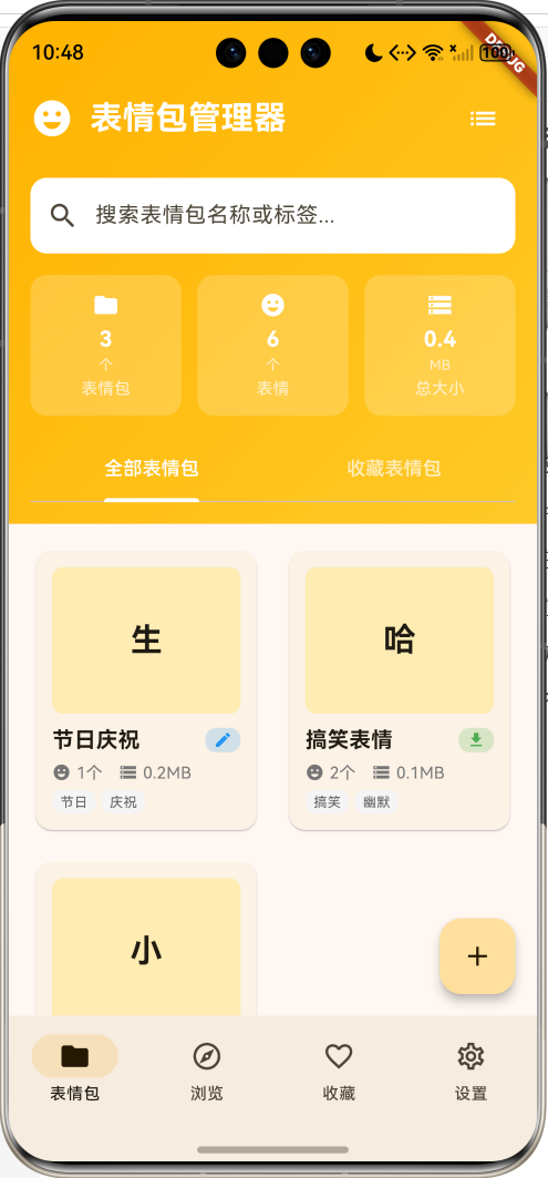 - 完整的管理功能:表情包创建、分类、搜索、收藏一应俱全