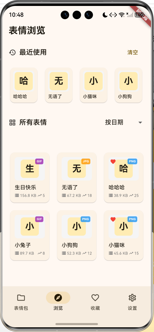 - 收藏页面:管理收藏的表情,快速访问喜爱内容