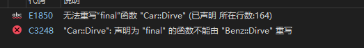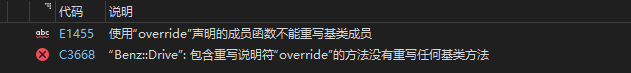 虚函数的重写(覆盖):派生类中有一个跟基类完全相同的虚函数(及派生类虚函数与基类虚函数的返回值类型、函数名字、参数列表完全相同),我们叫做派生类的虚函数重写了基类的虚函数