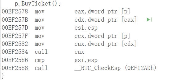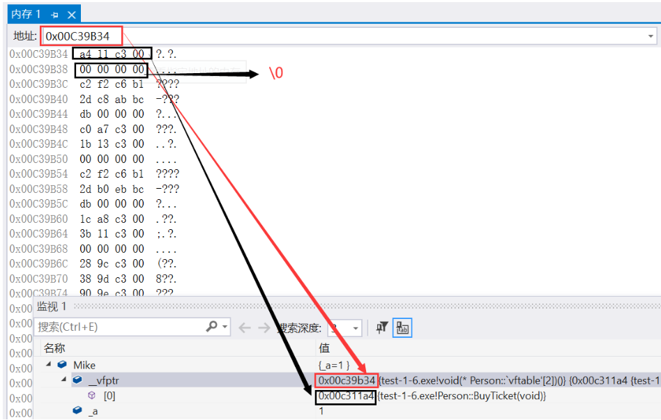 printf("vftptr:%p\n",*((int*)pp));//将pp强转为int*,即pp指向对象p的前四个字节,对它解引用就拿到了前四个字节,前四个字节就是vftptr(虚表指针)