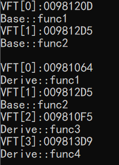 PrintVFT((VFunc*)(*(int*)&d));//将d的虚表指针传过去