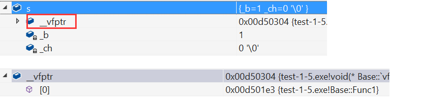 可以看到调用了构造函数后虚表指针依旧进行初始化了