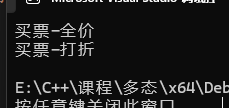 virtual void BuyTicket() { cout << "买票-打折" << endl; }