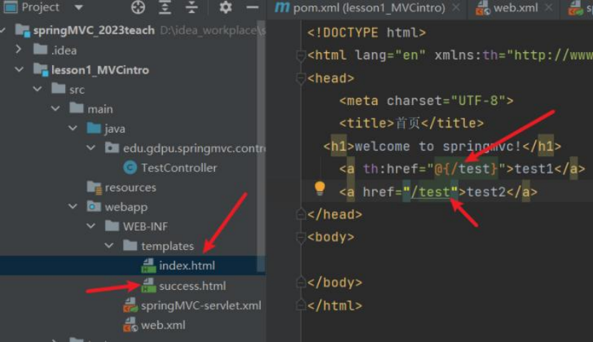 6)编写对应的html页面,比较a标签href属性两种写法的区别。