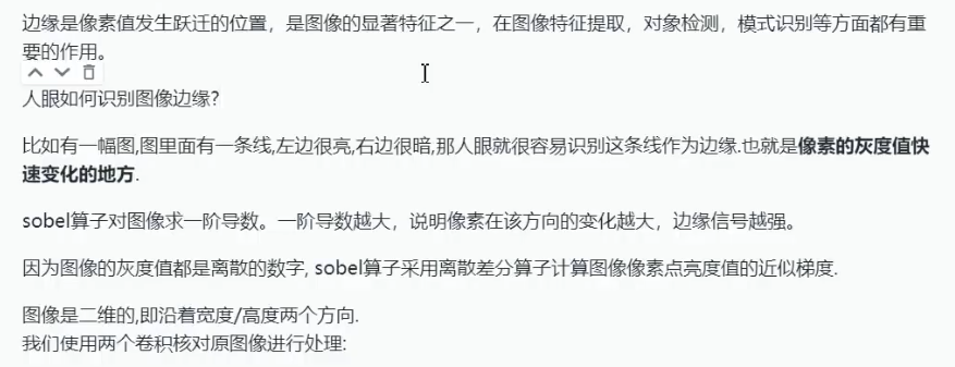 这种快速变化的特征,可用数学中的导数进行求取,即X或Y方向上往前几个像素,对应的像素值差值很大,或说斜率很大、梯度很大。