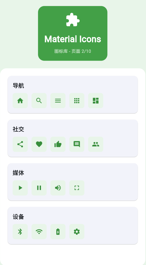 Material Icons是Google官方提供的图标库,包含1000+精美图标,是Material Design设计语言的重要组成部分。这些图标经过精心设计,具有统一的视觉风格和优秀的可读性,广泛应用于Android和Flutter应用中。