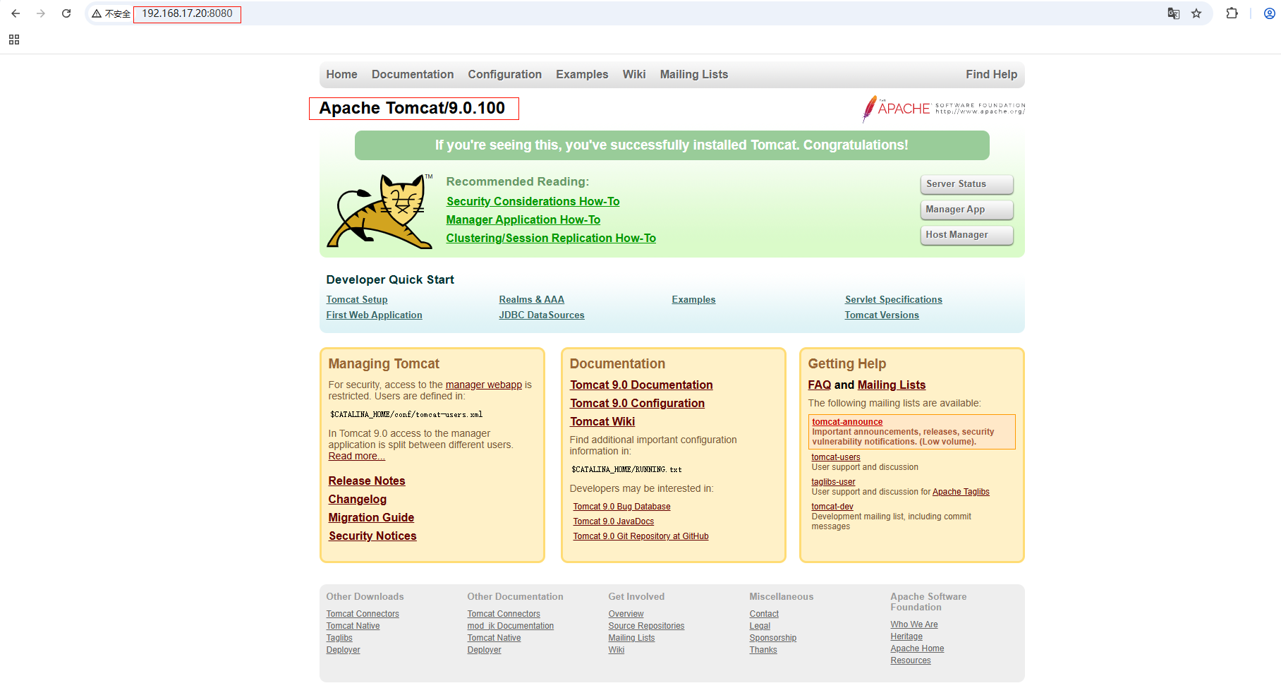 如果看到经典的 Apache Tomcat 首页(带猫 logo),恭喜你!Tomcat 已成功运行!
