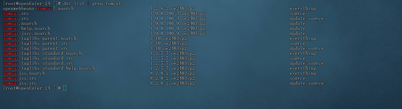 虽然 Spring Boot 内嵌了 Tomcat,但如果你需要部署 WAR 包、管理多个应用、或进行精细调优,独立安装 Tomcat 仍是刚需 。本文将带你在 openEuler 24.03 LTS 上干净、安全、高效地安装 Tomcat 9,并完成基础配置与验证。