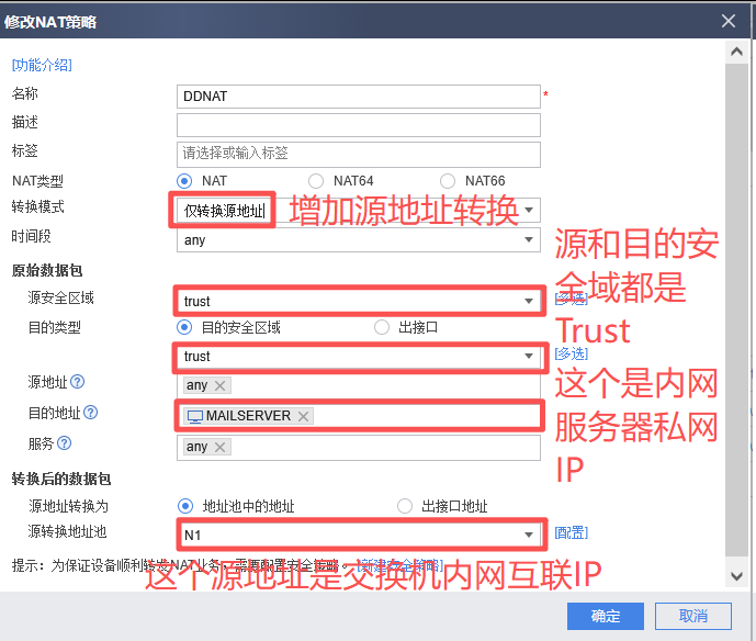 接下来说下双向NAT的问题,正常双向NAT按照如下方式配置: