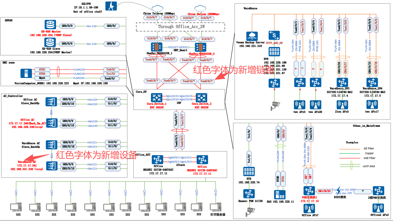 最近接了个Case,某外贸公司网络改造一期项目,主要针对核心机房设备进行高可用改造,新增核心,替换,利旧部分接入交换机等操作,以下分几个方面做个总结: