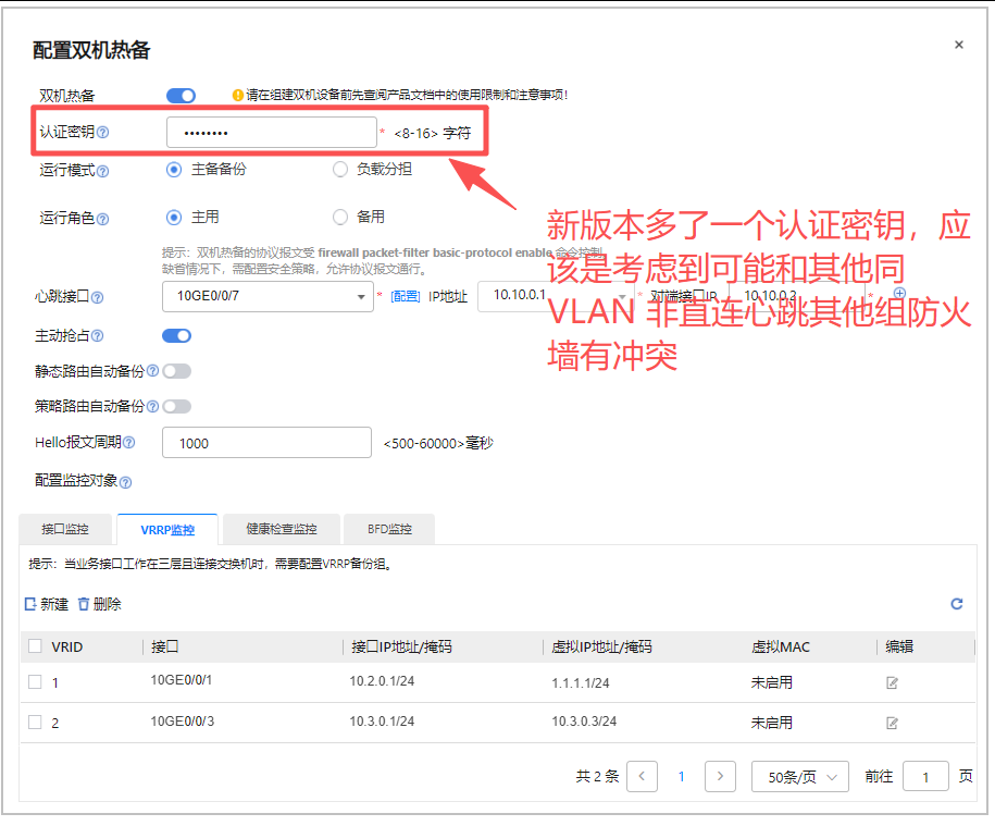 新版本的HRP命令行配置,VRRP配置部分是和老版本一致,增加了配置自动同步功能,增加了HRP认证功能: