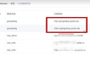 创建成功后,打开左侧在线隧道列表,可以看到刚刚通过创建隧道生成了公网地址,接下来就可以在其他电脑或者移动端设备(异地)上,使用这个地址在浏览器中访问即可。