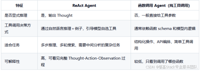 经常会被拿来对比的是 Function Calling Agent 或"纯工具调用 Agent":